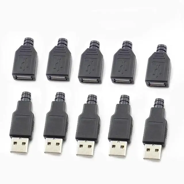 5Pair Micro USB Connector Male Female DIY USB 2.0 Type A Connectors Charging Socket Micro USB Plug Tail Black Plastic Cover