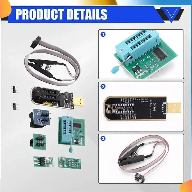 CH341A BIOS USB Programmer SOP8 DIP8 1.8V Conversion Socket 8-Pin Test Clip Set For Or Motherboard