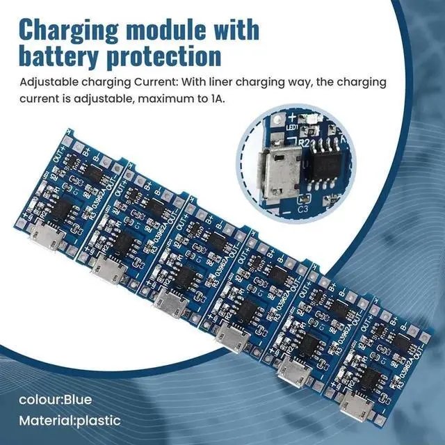 6PCS For TP4056 Charging Module With Protection BMS 5V Micro-USB 1A Charge Board For