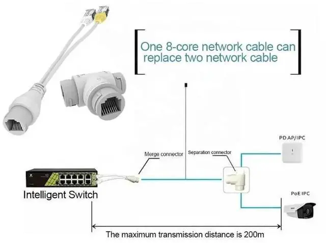 1pcs POE Splitter 2-in-1 Network Cabling Connector Three-way RJ45 Connector for Security Camera install Transmission & Cables