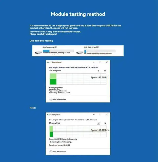 • USB3.0 Reader Module SD+TF Card 2-In-1 Dual Card Dual Reading On-Board GL3224 Chip Mini Reader Module