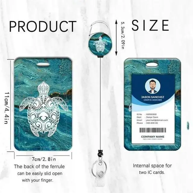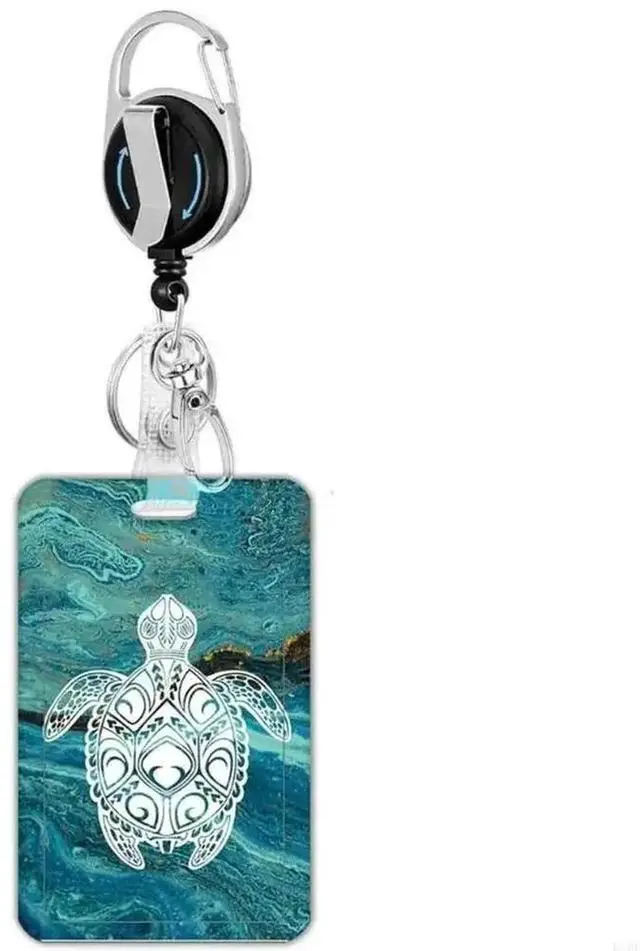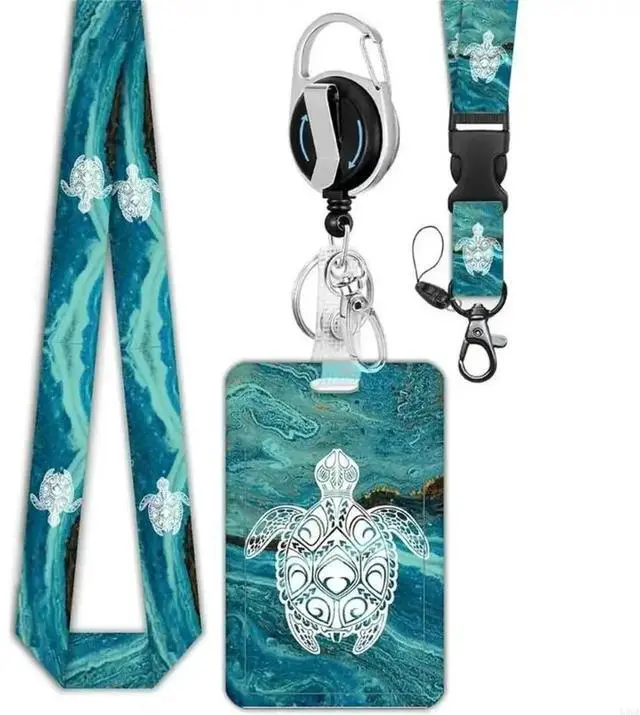 Lanyard Badge Card Holder with Keyring Beautiful Neck Strap Lovely Turtles Name Card Cover Case for Students