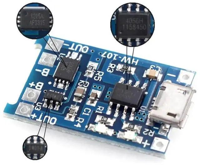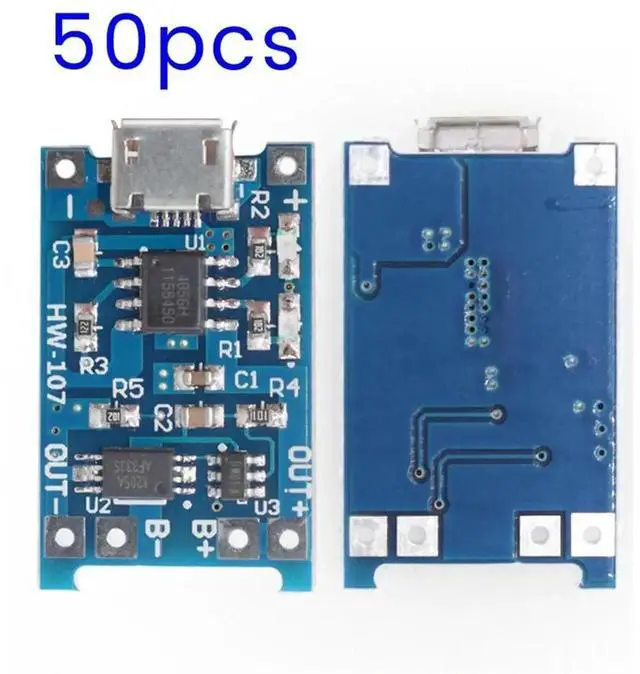 50 PCS TP4056 Micro-USB Lithium Charging Board 5V 1A Charger Module Blue PCB