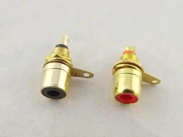 1 Pair Gold RCA Phono Female Chassis Panel Mount Socket l Connector Black Red