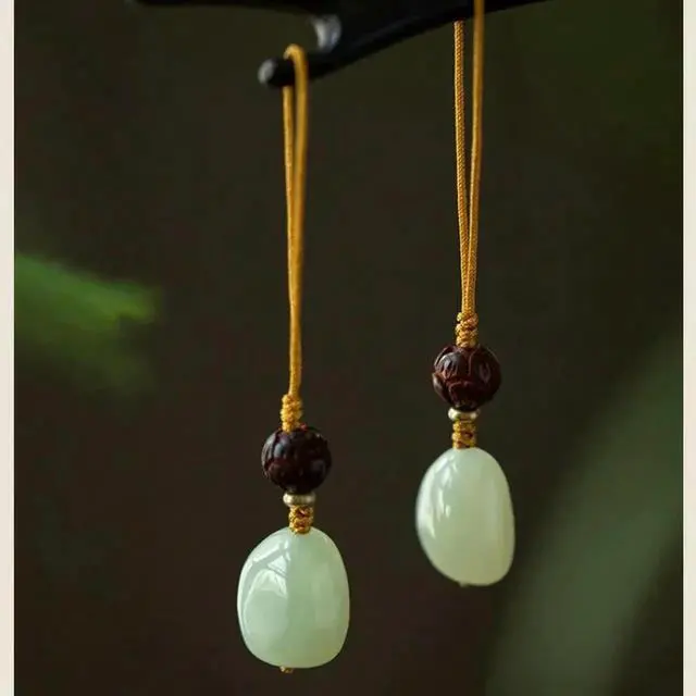 Chinese Style Jewelry Mobile Phone Pendant and Key Chain for Men and Women, Hetian Jade Small Stone