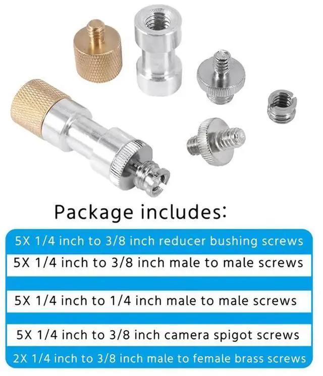 • 88Pack Camera Screw Adapter 1/4 To 1/4 Screw 1/4 To 3/8 Tripod Screw Adapter Converter Brass Screw