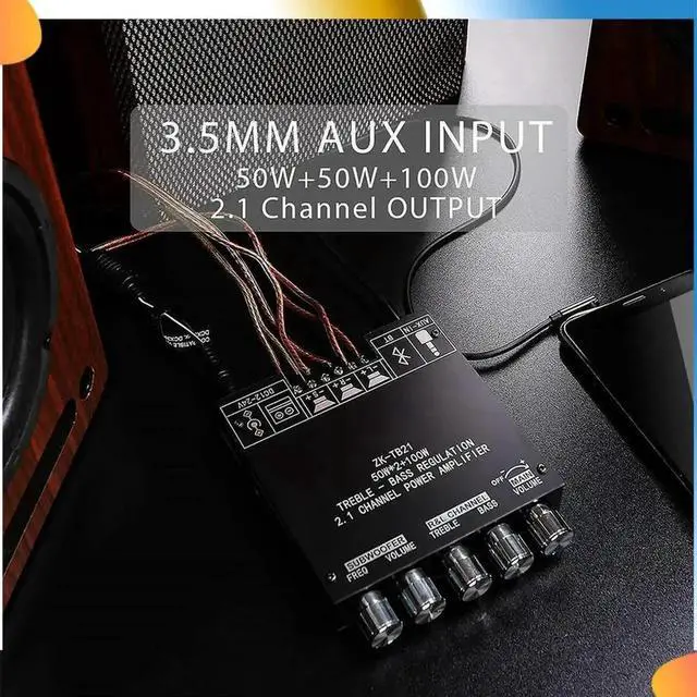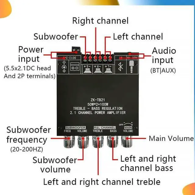 • ZK-TB21 Bluetooth 5.0 Subwoofer Amplifier Board 50WX2+100W 2.1 Channel Power Audio Stereo Amplifier Board Bass AMP