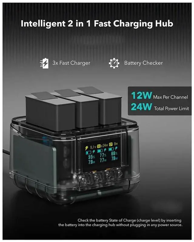 • For Gopro Hero 13 Charger 1900 Mah Power Fast Charging Hub With Display For Go Pro Hero 13 Accessories