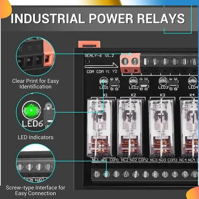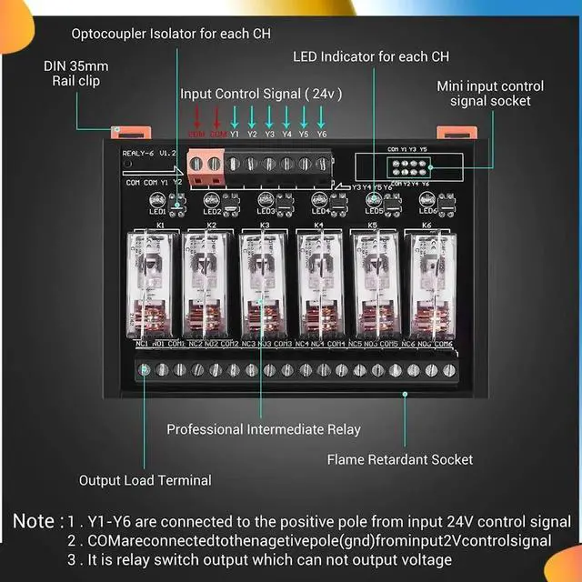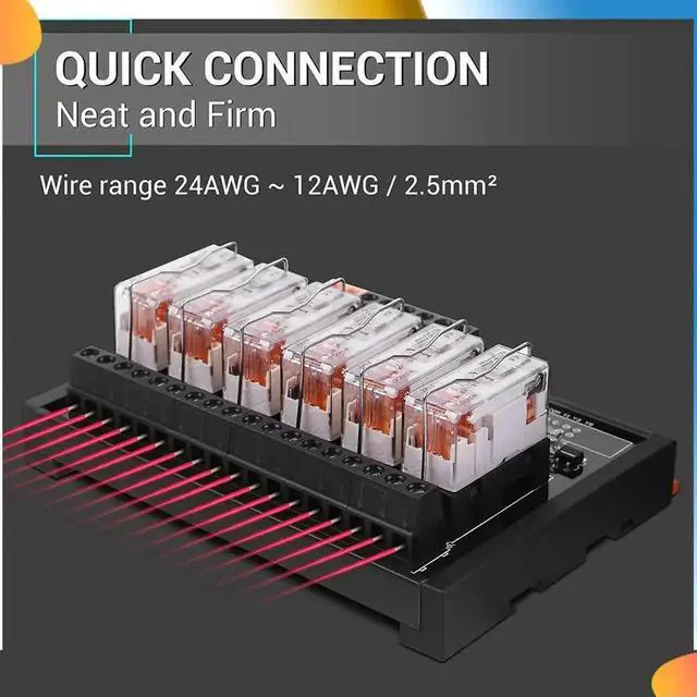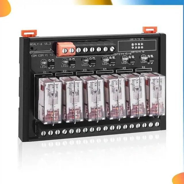 • DC 24V Relay Module, 6 Channel SPDT Switch Module With Isolated Optocoupler DIN Rail Mount Pluggable Power Relay Module