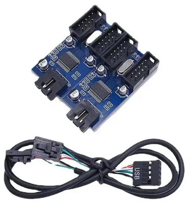 • 9-Pin USB 2.0 Connector Adapter Port 9pin USB Header Male 1 to 4 Female Extension Cable Card Desktop USB HUB Multilier