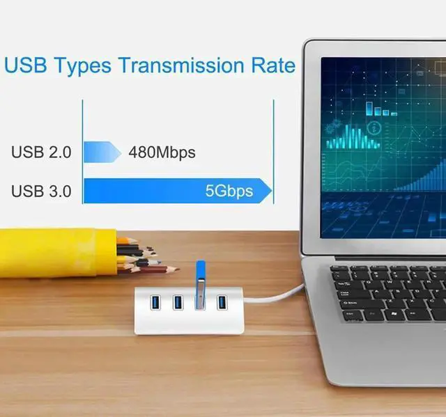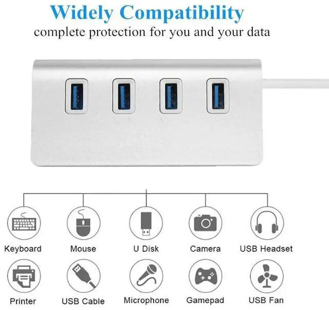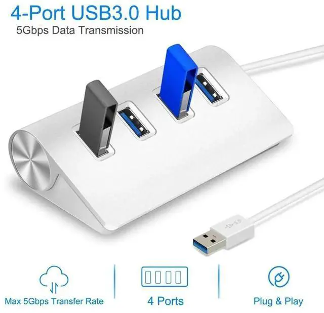 Aomoproing Aluminum Usb 3.0 Hub 4 Ports High Speed Multi Splitter Adapter Expander Laptop Computer Pc Office Hub Up To 5Gbps Accessories