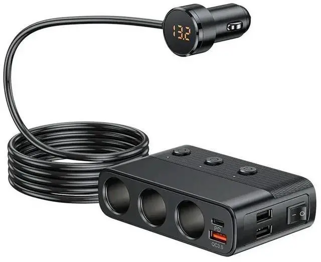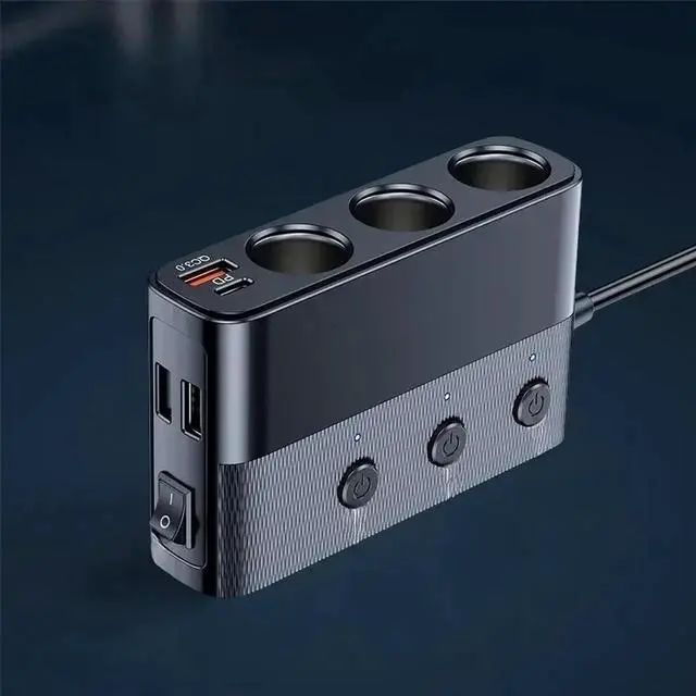 • 128W Car Charger Splitter Multi Ports PD30W QC3.0 Cigarette Lighter Adapter Car Cigarette Lighter Socket Splitter with Switch