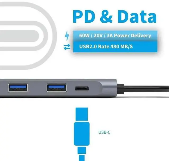 • Type C To HDM USB 3.0 PD Power Converter 5 - in - 1 HUB Adapter Dock for 11/12.9 Pad Pro for Dex Station MacBook Pro