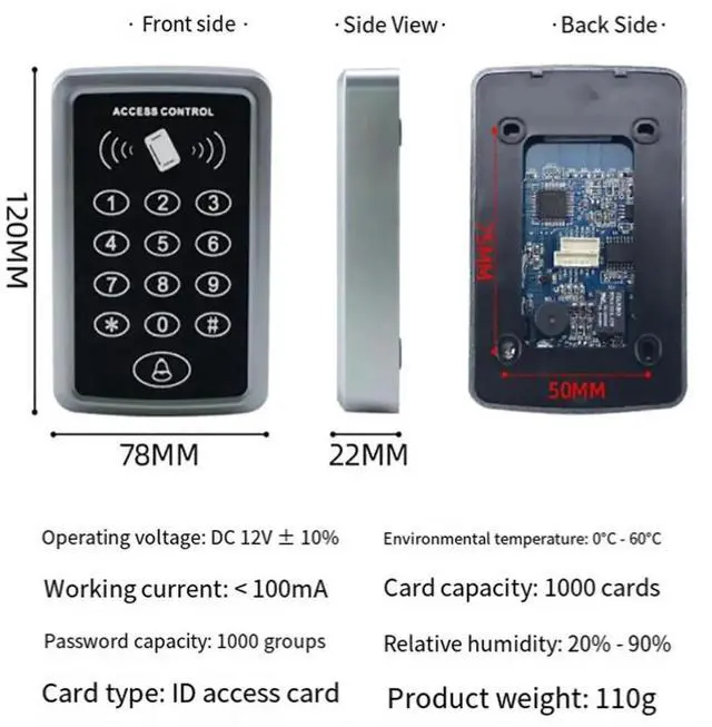 • RFID Keypad Keyboard Access Control System Waterproof Cover Outdoor EM4100 TK4100 Keyfobs Door Opener for Lock System