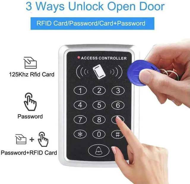 1. RFID Keypad Keyboard Access Control System Waterproof Cover Outdoor EM4100 TK4100 Keyfobs Door Opener for Lock System