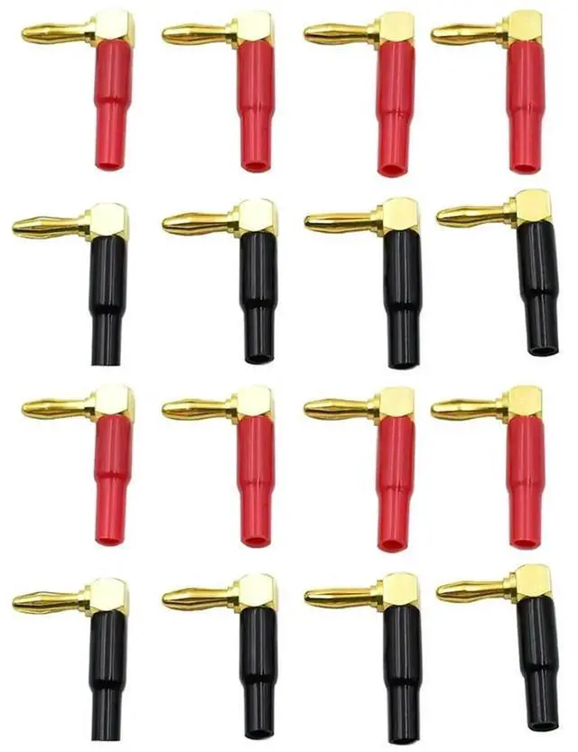 • 16Pcs 4Mm Banana Plug Speaker Wires Connector Adapter 24K Gold Plated Screw Type Pure Copper Right Angle Banana Pl