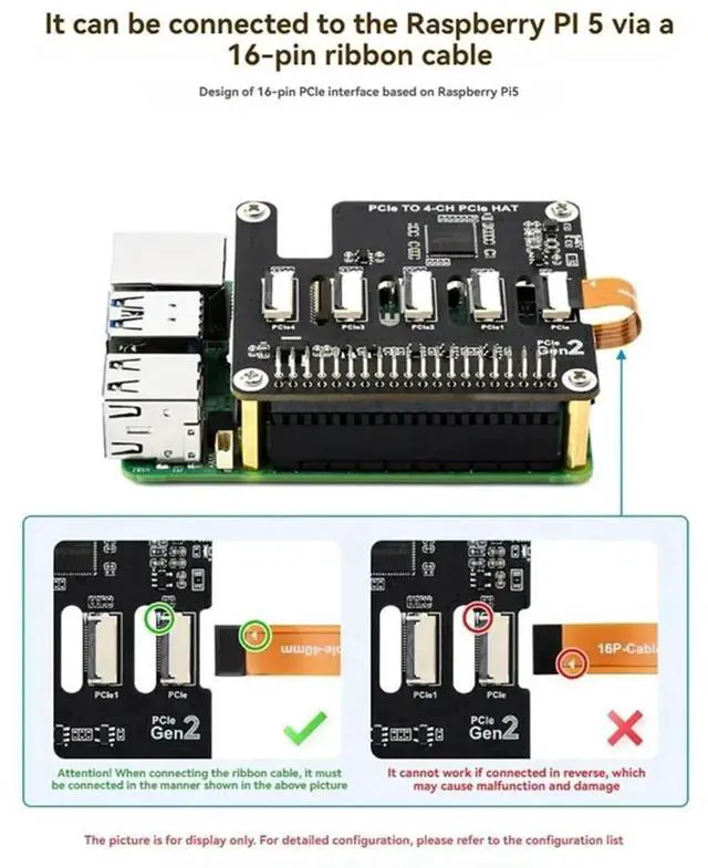 4-CH Pcie HAT Expansion Board Pcie FFC For Raspberry Pi 5 Supports Stacking HAT Modules