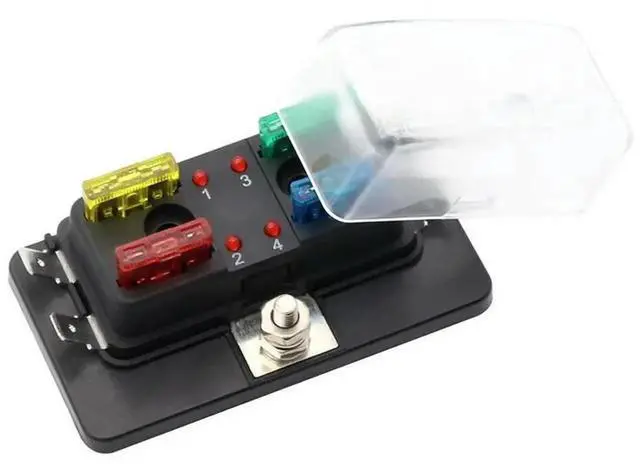 • DC 12-32V 4 Way Car Vehicle Circuit Automotive Blade Fuse Box Block LED Indicator Warning Fuse Holder Box