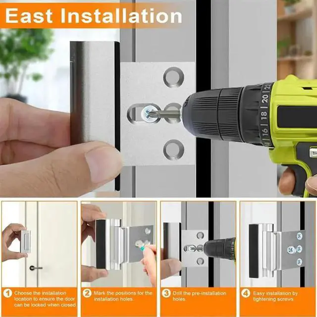 • 2Pack Home Security Door Reinforcement Lock Security Door Locks Home Prevent Unauthorized Entry Forkids Safety Silver