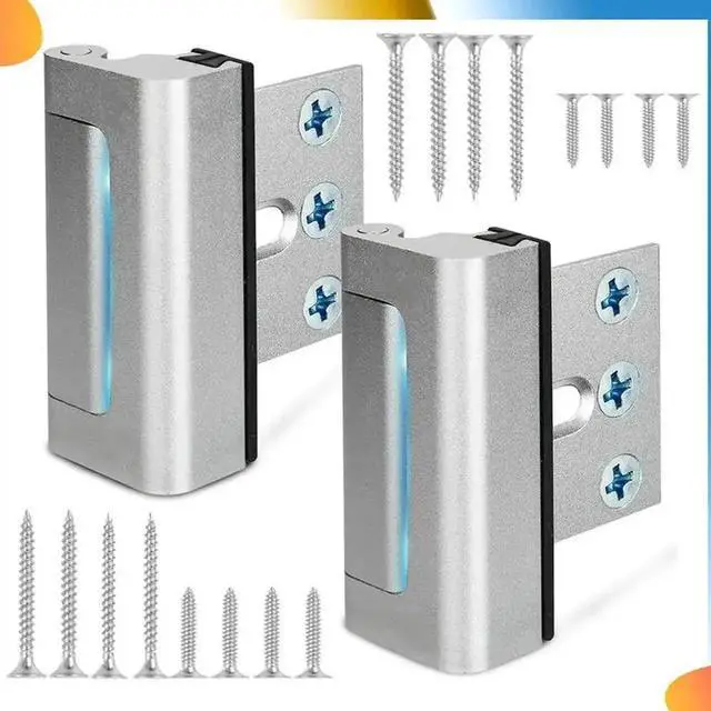 1. 2Pack Home Security Door Reinforcement Lock Security Door Locks Home Prevent Unauthorized Entry Forkids Safety Silver