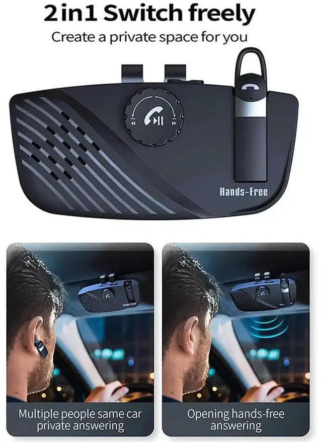 • Bluetooth-compatible 5.0 Speakerphone 2 in 1 Handsfree Sun Visor Speaker Wireless Car Kit Earphone Audio Music Loudspe L1