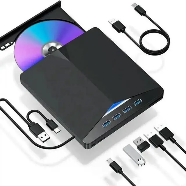 1. 7 Port External DVD Drive USB Type C Portable DVD Player Burners Reader