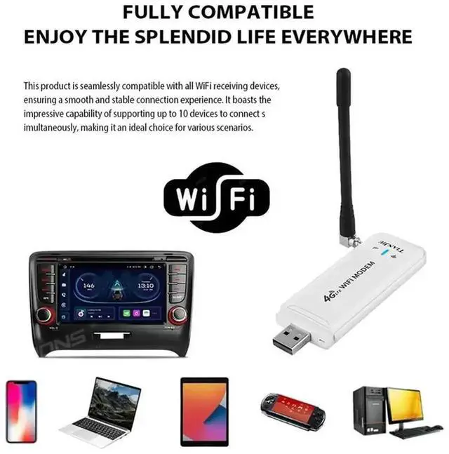 • 4G LTE Router Portable USB Modem With Antennas,150Mbps High Speed Hotspot,Supports 10 Devices
