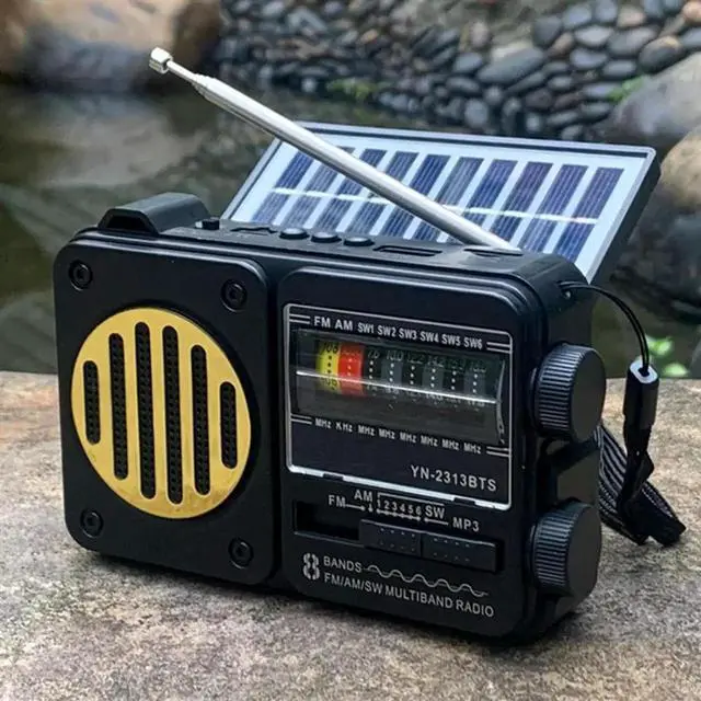 • Solar Powered Emergency Radio FM/AM SW Portability Vintage Style Wireless Bluetooth Speaker Receiver Built-In Flashlight