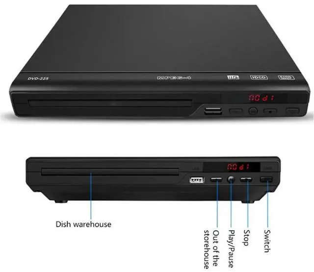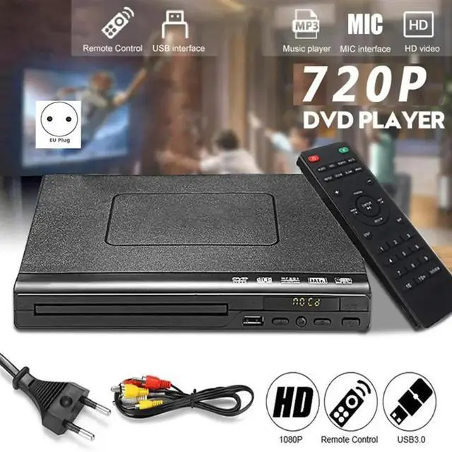 • AV Output USB Disc Player Children's VCD Player For TV Casting, DVD Media, VCD Disc, CD Playback EU Plug