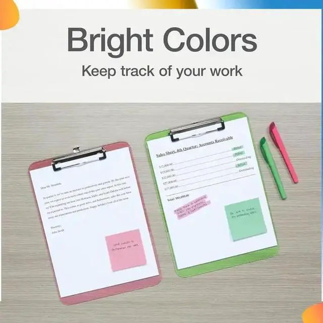 • Plastic Clipboards, l Clip With Plastic Corners, Writing Surface With Hanging Loop, 12.5Inch X 9Inch, 6 Pack