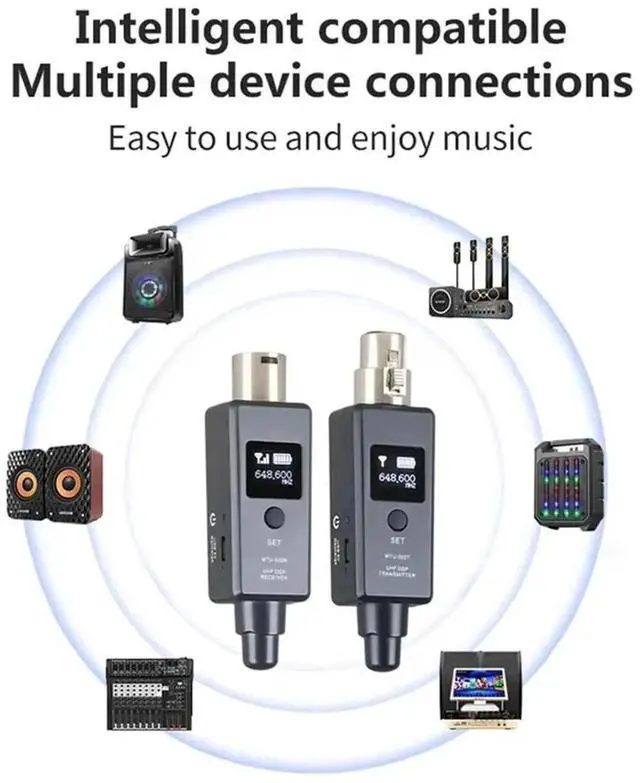 1. Wireless Mic System UHF DSP Dynamic Rechargeable Transmitter Receiver Mic/Line Two Modes For Mixers Recorders Speakers