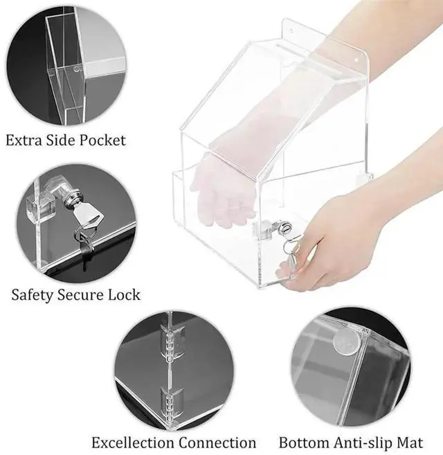 • Office Ballot Boxes With Lock Acrylic Suggestion Box Wall Mounted 5" X7" Sign Slot Donation Box