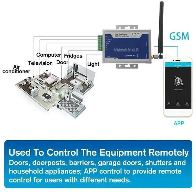• Wireless Door Opener, Remote Control, Relay Switch, GSM Gate Opener, Door Access, 900/1800Mhz, 999 Users By Free Call