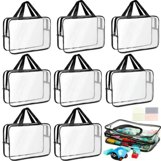 • Large PVC Reusable Board Game Containers Clear Zipper Pouches, 9 Packs Toy Bags With els