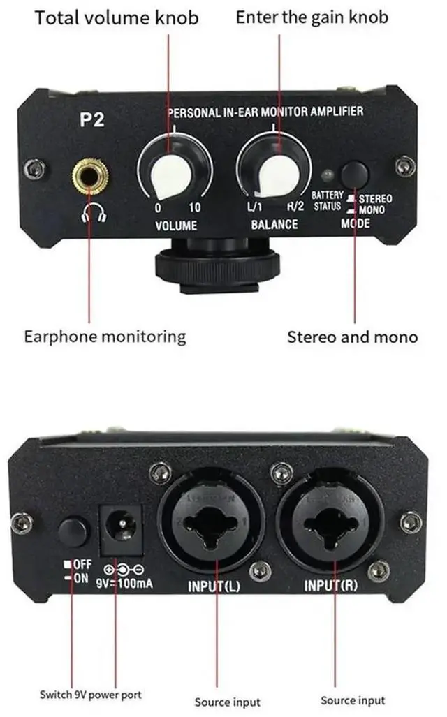 • Microphone Enlarge Mixer Preamplifier P2 Headphone Monitor Suitable For Speech/Live Streaming EU Plug
