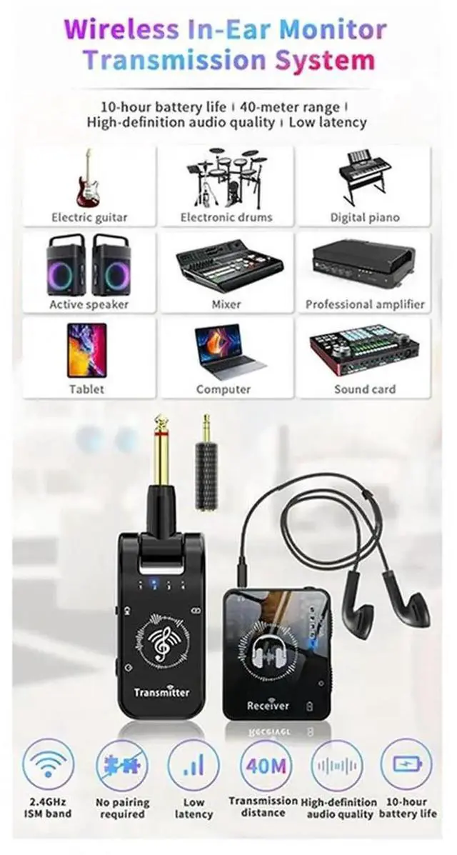 • 2.4Ghz Wireless Earphone Monitor Transmission System Stage Audio Headphone Transmitter And Receiver