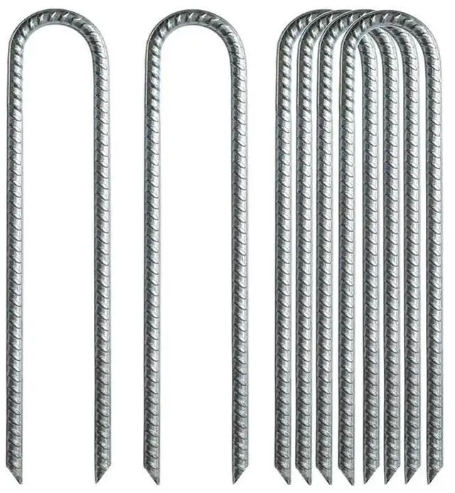 Aomoproing 6Pcs Garden Ground Rebar Stakes Tent Nails Galvanized Steel U Pegs Gardening Anchors, Heavy Duty Landscape Pins 12 Inch Rich