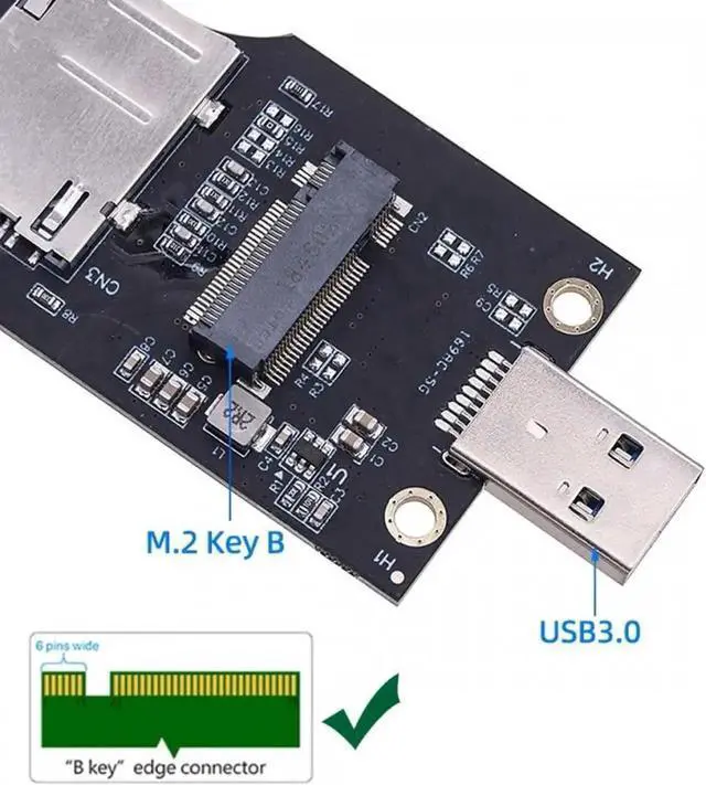 NGFF M.2 Key-B WWAN to USB 3.0 Adapter Riser Card w SIM Slot For 3G/4G/5G LTE Wireless Module Modem Card