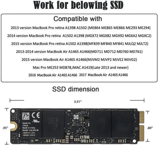 • 2015 MacBook Air A1465 A1466(MJVM2 MJVP2 MJVE2 MJVG2) and Mac Pro ME253 MD878 SSD