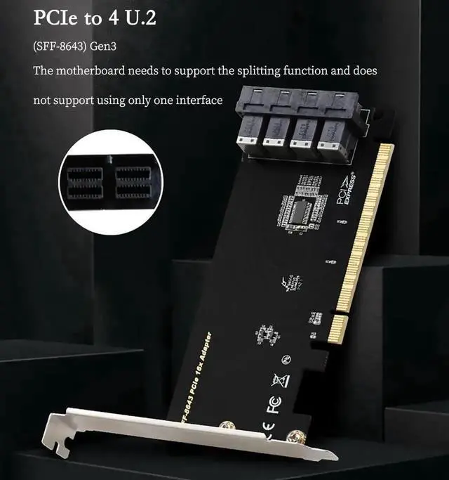 Compatible with PCIe x8/x16 Slots \u2013 Works with motherboards that support PCIe bifurcation, delivering full bandwidth to each U.2 port.
