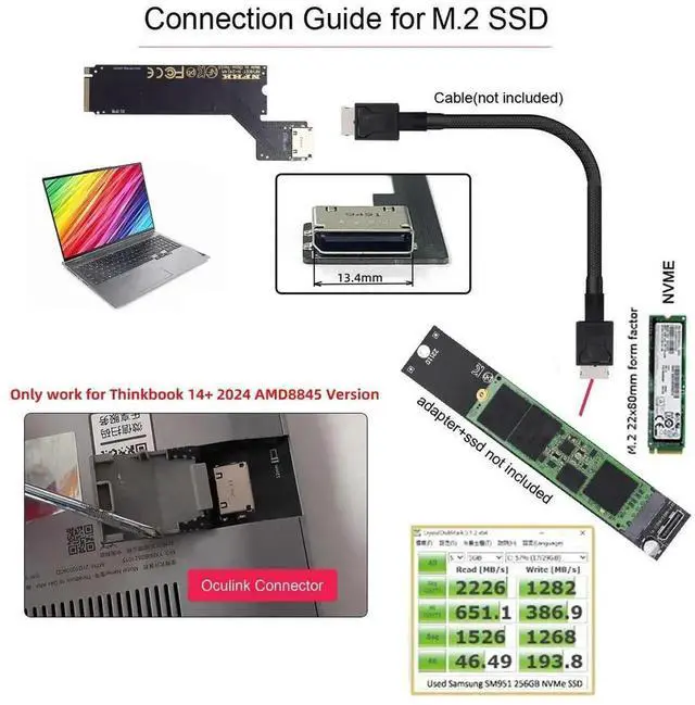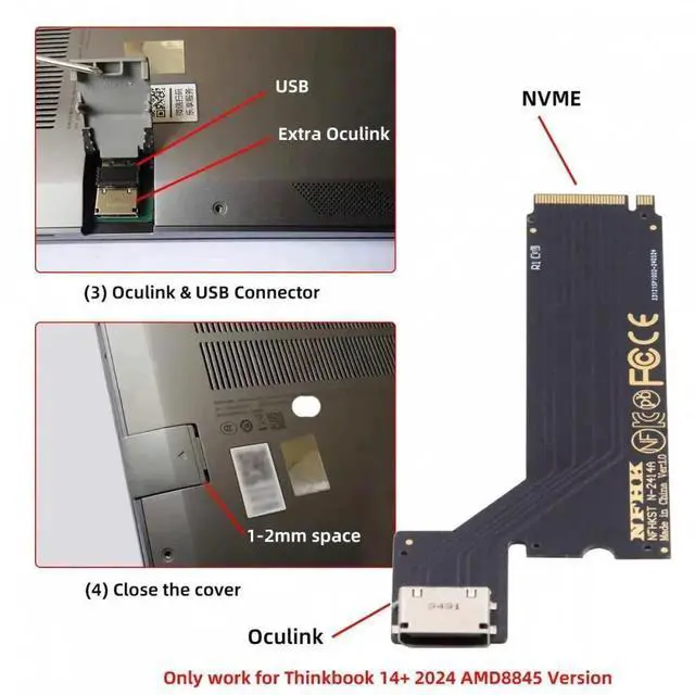 • PCI-E 4.0 M.2 M-key to Oculink SFF-8612 SFF-8611 Host Adapter for 2024 ThinkBook 14+ AMD8845 External Graphics Card SSD
