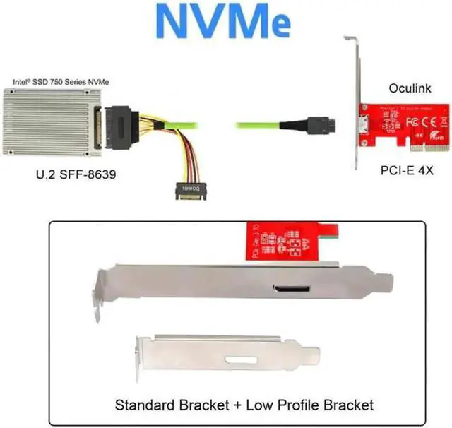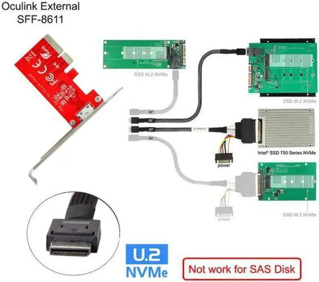 Aomoproing PCI-E 3.0 Express 4.0 x4 to Oculink External SFF-8612 SFF-8611 Host Adapter for PCIe SSD with Bracket