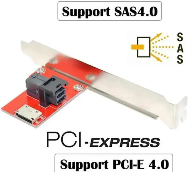 • PCI-Express 4.0 Mini SAS HD SFF-8643 to Oculink SFF-8611 SFF-8612 PCBA Female Adapter With Bracket