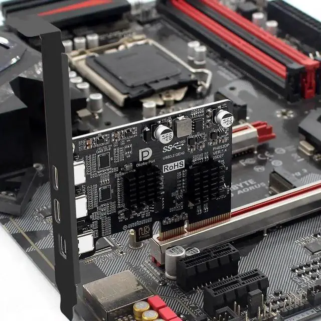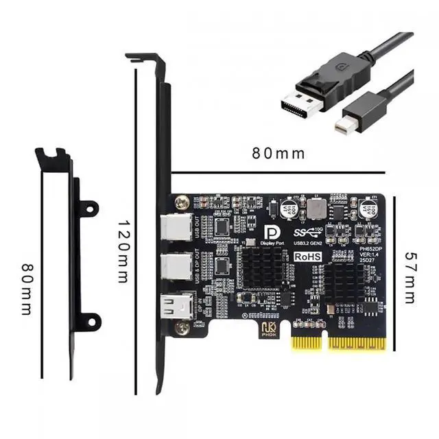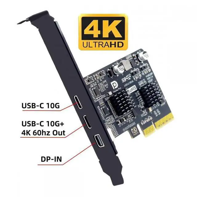 PCI-E Express 4x Mini Displayport 1.4 Input to Dual 10Gbps USB 3.1 Type-C USB-C 4K 60hz Output Desktop Graphics Expansion Card Adapter ASM3142