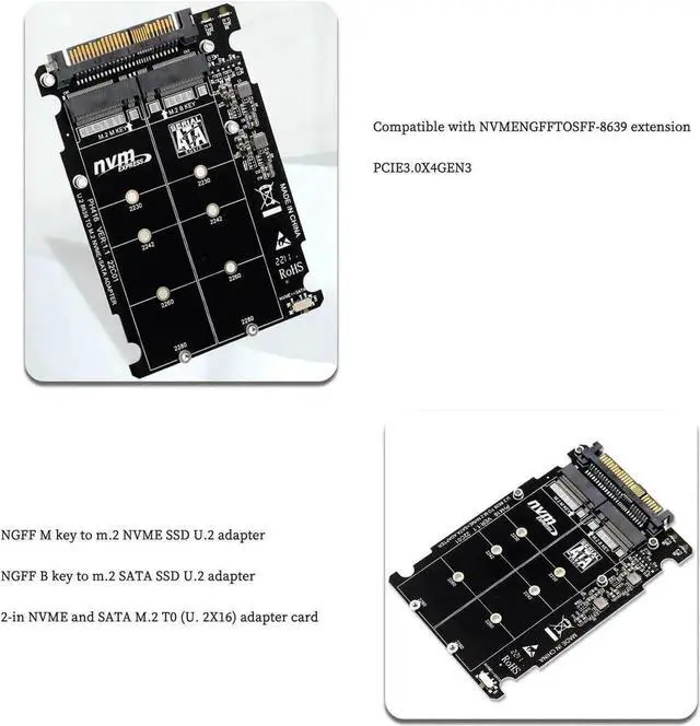 2in1 NVME and SATA M. 2 to (U. 2X16) Adapter Card