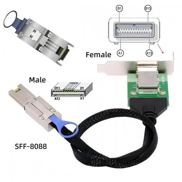 External 8088 male to female cable, will work both on the host and device side. With Low Profile bracket.