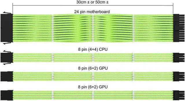 Vivid? Mod your build with 12 unique color options in 30cm and 50cm variations.? Robust and Adaptable? All cables are manufactured with thick 18AWG wires and come in a high-density flexible protective sleeve allowing for a stiff yet adaptable temperament. Comes with several cable combs to cleanly route and organize.