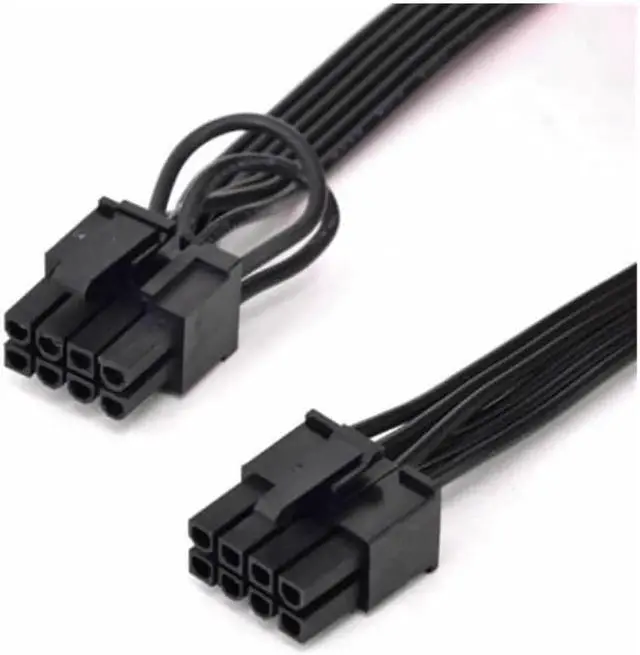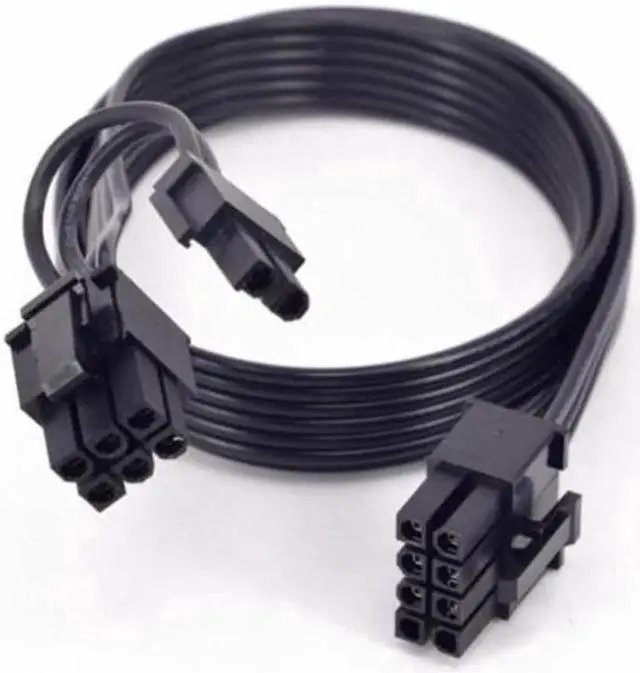 It connects the 8-pin PCIe port on the power supply to a 6+2-pin connector, which is compatible with both 6-pin and 8-pin power interfaces on graphics cards.