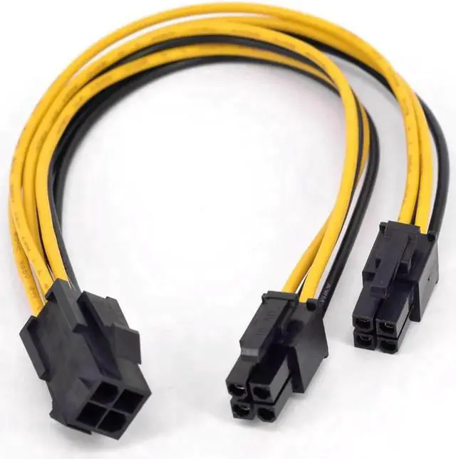 This 4-pin CPU power Y splitter cable converts one ATX 12V P4 female port into two outputs, ideal for motherboards or devices requiring dual 4-pin auxiliary power. Made with heavy-duty 18AWG wire to ensure safe and stable power supply for CPU and system components.