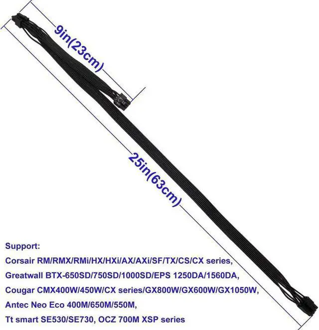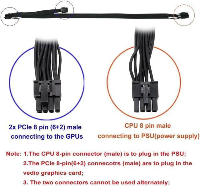 This power adapter cable is designed for modular power supplies, converting a CPU 8-pin connector into two PCIe 6+2-pin power ports. It provides safe and stable power for mid-to-high range graphics cards with durable construction and long cable length for clean cable management.